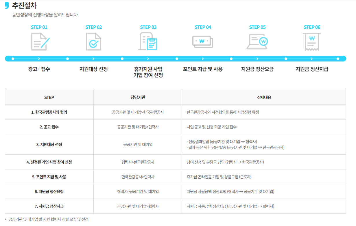 근로자휴가지원사업은 동반성장 협력사업과 연계하여 중소기웝과 소상공인을 대상으로 휴가 경비를 지원해주고 동방성장 추진실적 지표로 활용도 가능합니다.