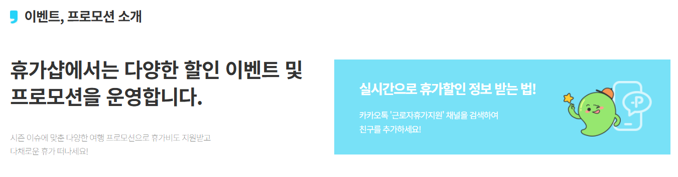 또한 휴가샵 온라인몰 이벤트를 통한 기업제품 소개의 기회도 주어질 수 있습니다.