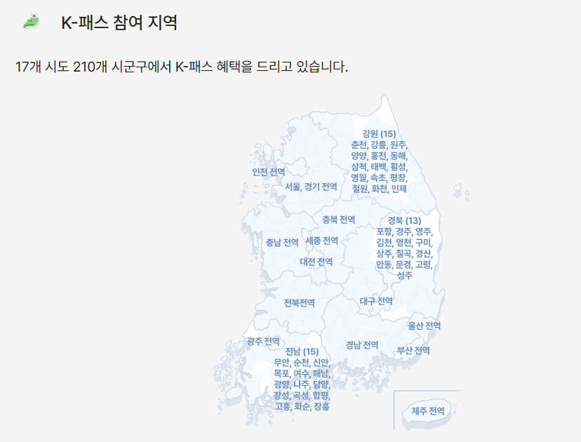 k-패스 현재 참여 지역은 아래와 같습니다.