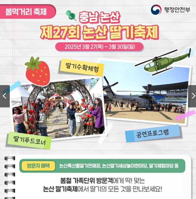 - 봄철 가족단위 방문객에게 딱! 맞는 논산 딸기축제에서 딸기의 모든 것을 만나보세요!