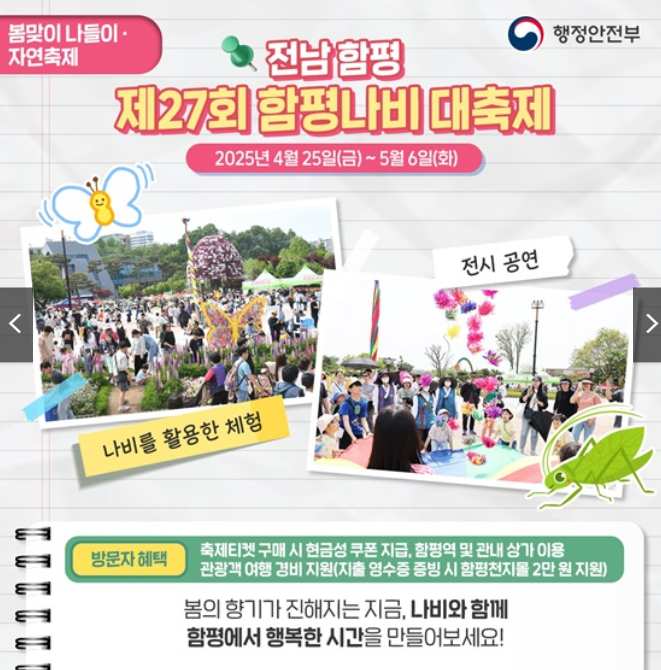 - 봄의 향기가 진해지는 지금, 나비와 함께 함평에서 행복한 시간을 만들어보세요!
