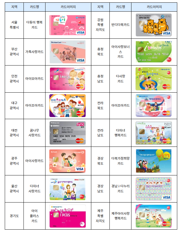 다자녀 우대카드의 기준, 혜택 및 절차는 각 지역별로 다르므로 자세한 내용은 반드시 각 지방자치단체에 문의하시기 바랍니다.