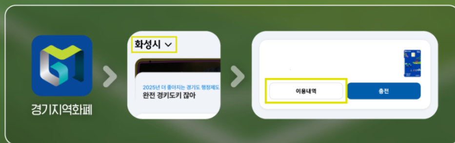 지급확인방법은 지역화폐앱"경기지역화폐"에 접속하여 좌측 상단 "화성시"를 확인하여 이용내역에서 '지급일 해당 월'로 변경하여 지급을 확인합니다.